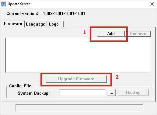 Extract the ZIP file file. You should see a .bin file, e.g. upgrade_6.bin. Take note of the location. - Click on “Update Server” in your VideoViewer Software